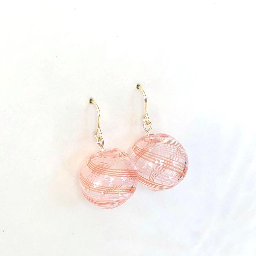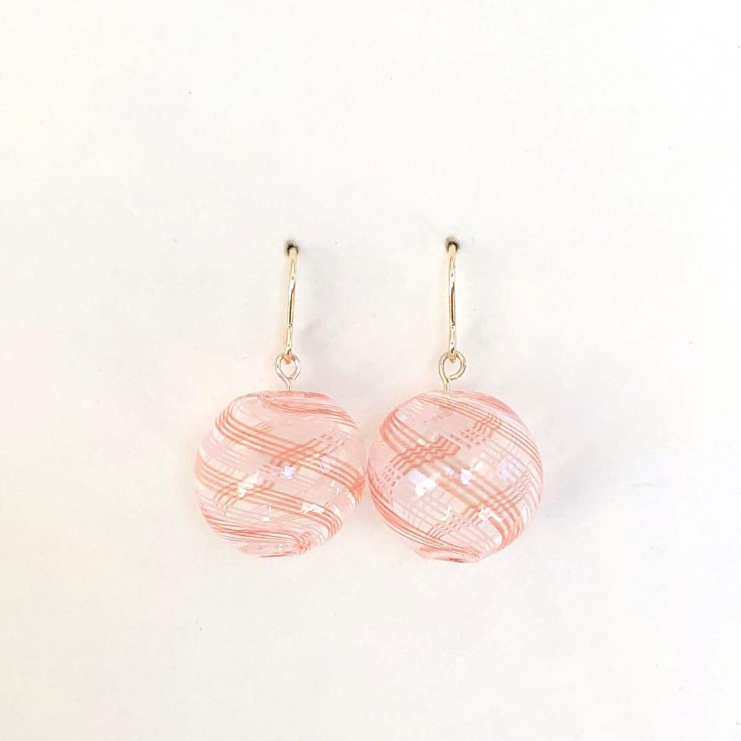 ハンドメイド ガラスビーズ ピアス イヤリング ビーズ 夏 ハンドメイドアクセサリー ガラス カラフル 手作りガラス オレンジ 橙色 水風船 螺旋 しましま レトロ クリア素材