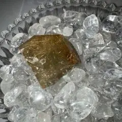 「天使の髪」と呼ばれる、黒い針(ルチル)が封じ込められた水晶の天然石です。
