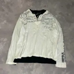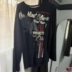 Y2Kらしい雰囲気のサイズスリット入りラインストーン装飾ロンTです。
