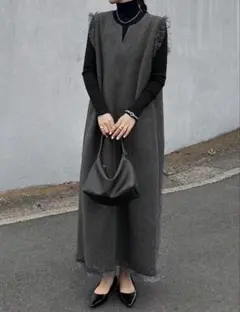 ノースリーブひざ丈ワンピース グレー