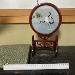 鶴と松の刺繍 木製置...