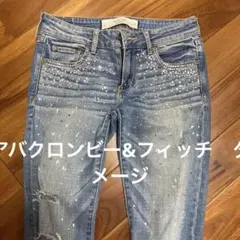 ダメージ加工が施されたブルーデニム、ローライズスーパースキニー サイズ26/2s