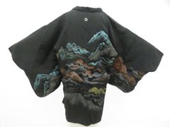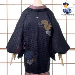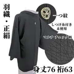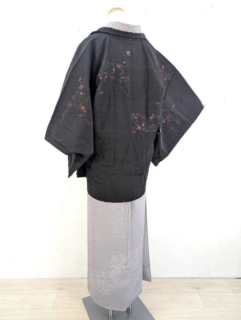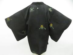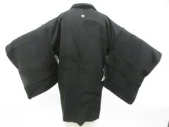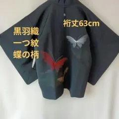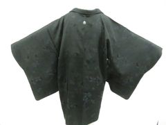 【美品】羽織 正絹 一つ紋 草花 地紋 着物 身丈77 裄64 黒