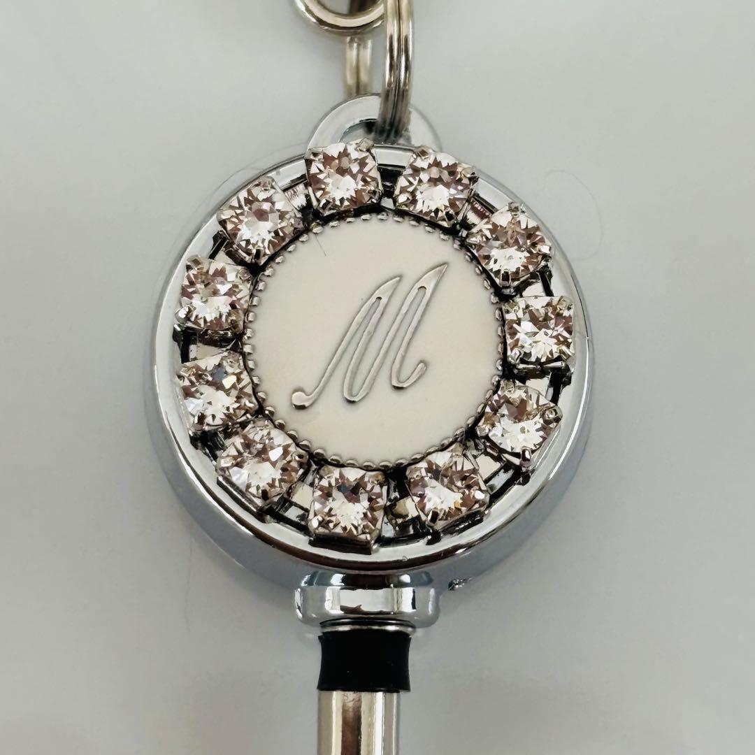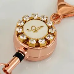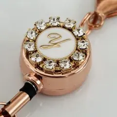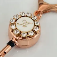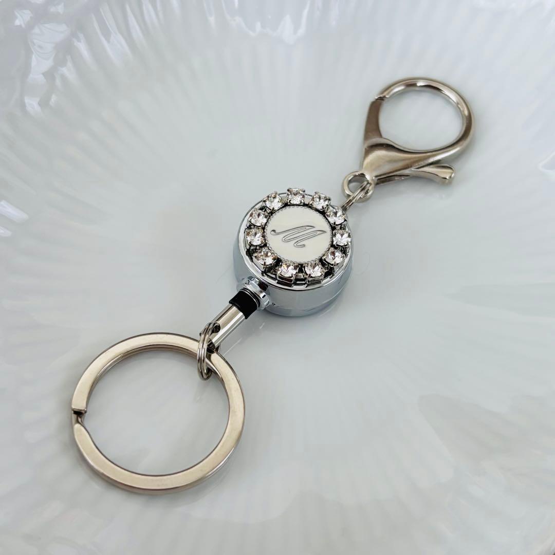 イニシャルにスワロフスキーをあしらったリールキーホルダーです。