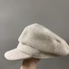 クリーム色のウール製ベレー帽で、シンプルでスタイリッシュなデザイン。