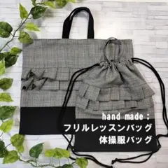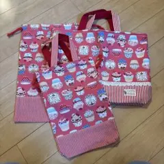 ハンドメイドのレッスンバッグ、上靴袋、体操服袋3点セットです。