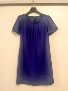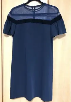 濃い青のひざ丈ワンピ...