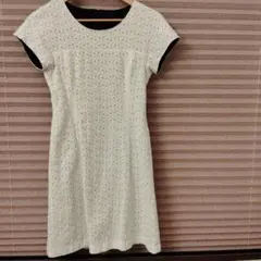 白いレース地膝丈ワン...