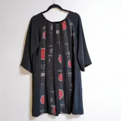 麻が少し混じった、涼しげなチュニック、サイズの表記はありませんのでフリーサイズかと思います。下記の実寸をご参考下さい。
