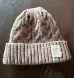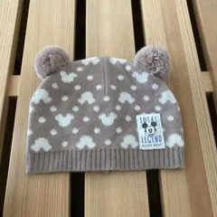 ネイビー キルティング ベビー帽子 ポンポン付き