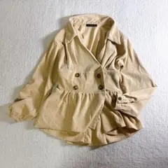 チェック柄のブラウン系長袖シャツ、前面に2つのポケット付き。