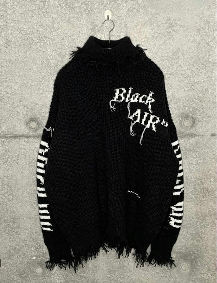 フリンジデザインのブラックニットセーター、オーバーサイズで快適な着心地。