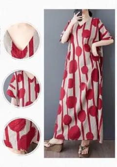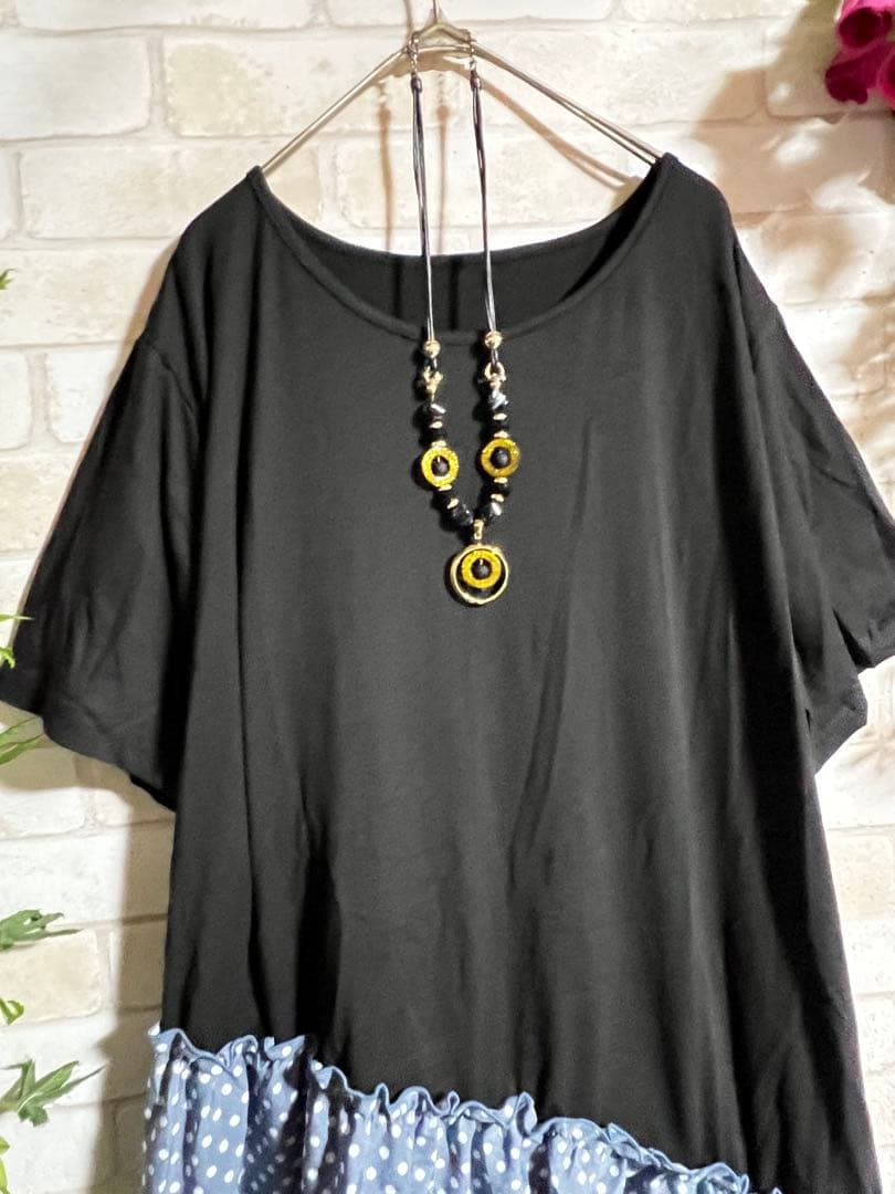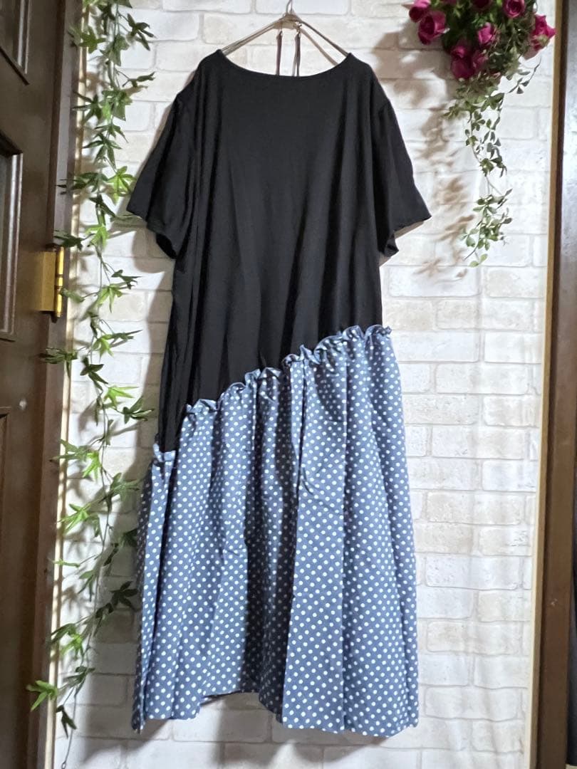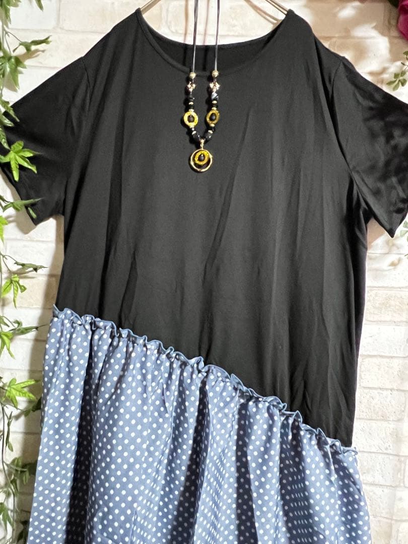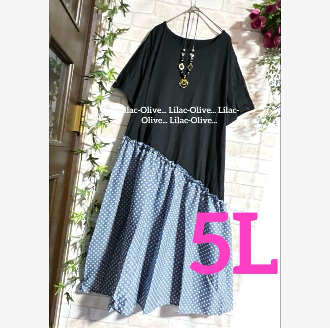 ❤️3968新品⭐️5L*斜めドット柄切替ふんわりロングワンピース大きいサイズ