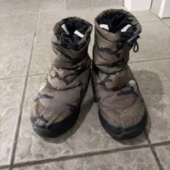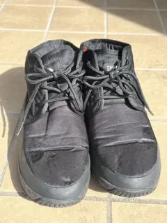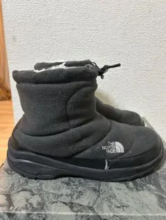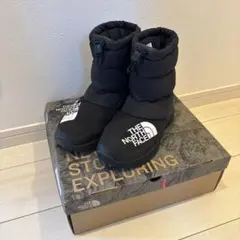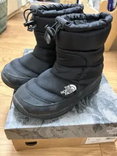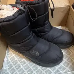 キルティングデザインのブラックスノーブーツ、合成繊維とゴム製で耐久性あり。