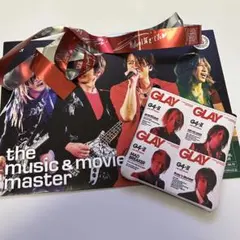 GLAY EXPO 2001のイエローのA4サイズのパンフレットとモバイルストラップのセット。