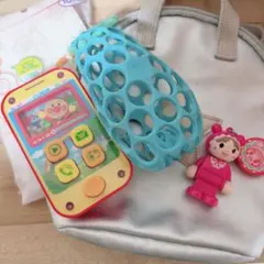 アンパンマンの知育玩具セット、木製のボールやハンドル付き。