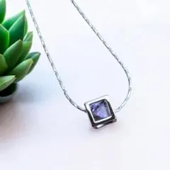 シルバーにピンク色のジルコニアをこしらえたネックレスです。光をあてると明るい青色が胸元で煌めいてさりげないながらも存在感を感じさせます。シンプルなデザインなのでシーンを選ばずにご使用いただけます。