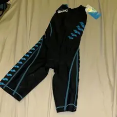 エコ素材を使用したターコイズのスイムトレーニング用水着、動きやすいストラップデザイン。