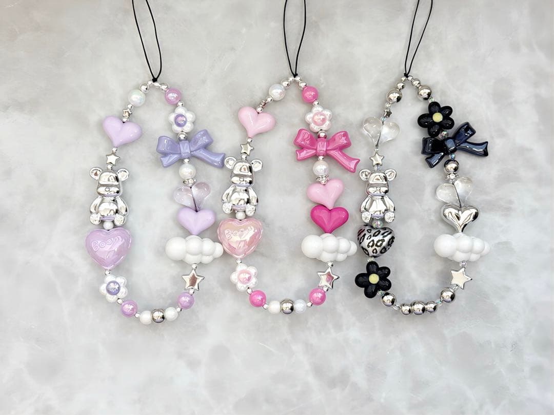 #ビーズストラップ #携帯ストラップ #スマホストラップ #ビーズアクセサリー #ハンドメイド #ハンドストラップ #ビーズキーホルダー #ビーズ #くま #雲 #ハート #リボン #地球