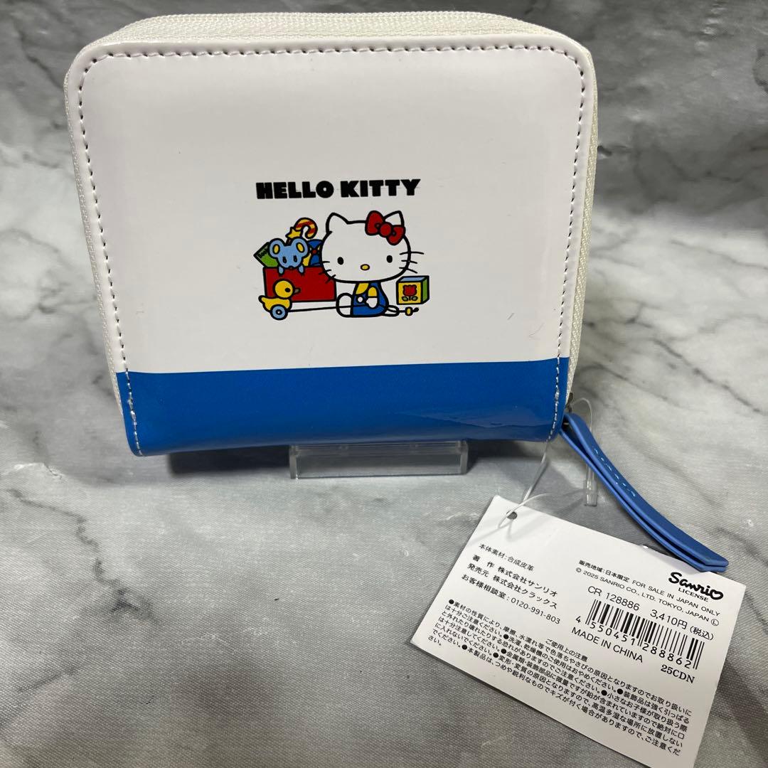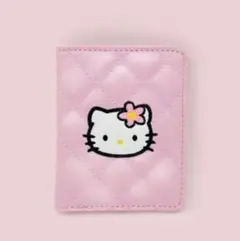 リンゴを持ったキティちゃんの周りに、おもちゃやスイーツなどのイラストが散りばめられたポップなデザインです。