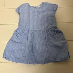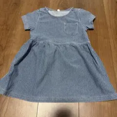 ストライプデザインの半袖ワンピース、カジュアルなコットン混合素材。