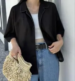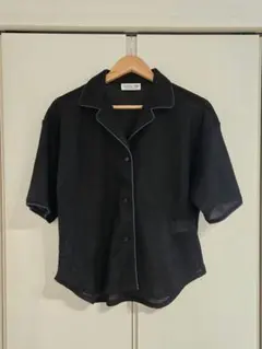軽やかなシースルー素材のグレー半袖シャツ。