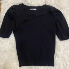ブラックリブ編み半袖トップス