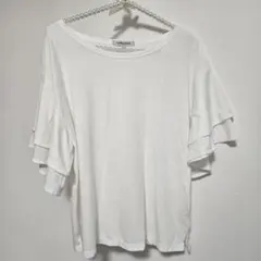 袖のフリルが二の腕をさりげなくカバーしてくれるのも嬉しいポイント。春夏に1枚は持っておきたいアイテムです。