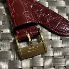 シルバー色尾錠と牛革型押し焦茶色ベルトの組み合わせです。