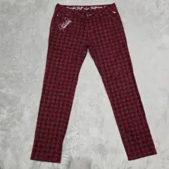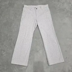 ★深緑、モスグリーン、黒、青、オレンジ、の色の入ったチェック柄のスラックスです。ゴルフに最適♪