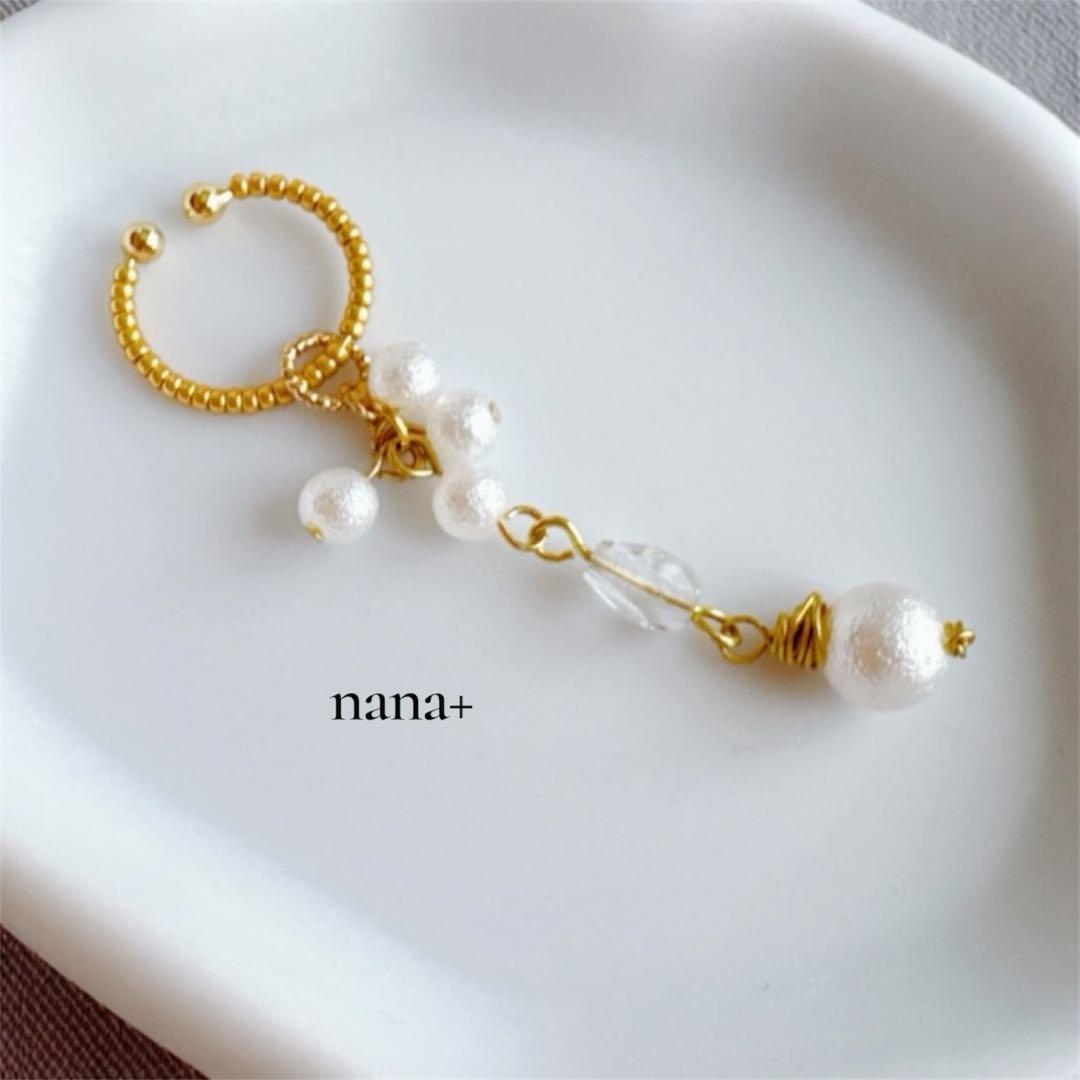 コットンパール / しずく / イヤリング / イヤーカフ / 片耳 / 揺れる / 上品 / アンティーク / 大人可愛い / ハンドメイド / セレモニー