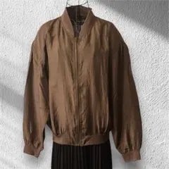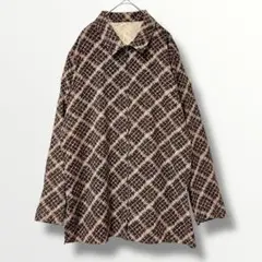 ブラウンのフロントボタン付きジャケット、チェック柄ライニング。