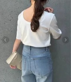 ホワイト リブ 半袖...
