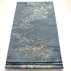 夏帯 青色 花柄 絹...