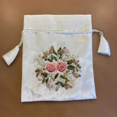 花柄刺繍クリーム色巾...