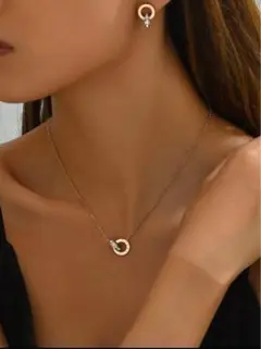 ローズゴールド 二重リング ネックレス