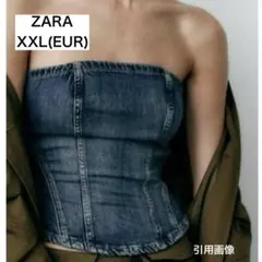 デニム素材のZARA製ベアトップ・チューブトップ、サイズS。