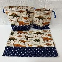 ˚*.꒰恐竜柄の巾着袋3枚まとめ売り꒱.*˚