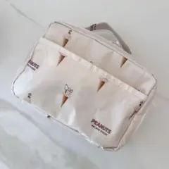 ジェラートピケ スヌーピー オリジナルアート総柄ポーチ ブルー