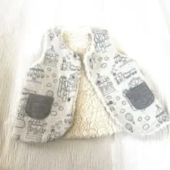 アニマル柄で個性を演出できるベストです。耳つきのフロントサイドポケットが目を引くワンポイントに。紺はひつじ、ブルーはしろくまでカラー