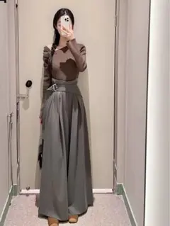 グレー ワイドパンツ ハイウエスト