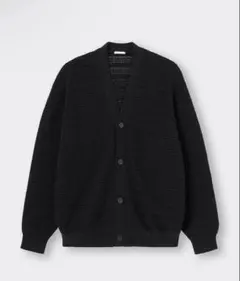 GUのワインレッドカーディガン、軽やかなナイロン素材で快適な着心地。