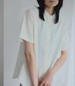 スカートにインスタイルでもパンツにアウトスタイルでも女性らしく着られる1枚です! ■素材 強撚糸によるシャリ感が心地いい素材。 タンブラーをかけたような凹凸感のある風合いはデイリーに気負わずお使いいただけます。しわになりにくく、手洗い可能なのもうれしいポイントです。 ■デザイン フロントのタックギャザーが女性らしいデザインです。 スカートに裾をインしても、すっきりとしたパンツにアウトスタイリングでもお楽しみいただけるデザインです。 袖口のギャザーも程良いボリューム袖で、セットアップのインナーとしても活躍します。
