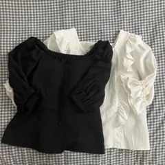 白黒 、腰ひもでの調節可能、両サイドポケットあり、Mサイズ