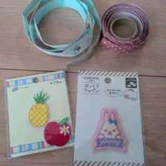 いちごデザインのワッペンとアイロン接着式ネームラベルのセット。
