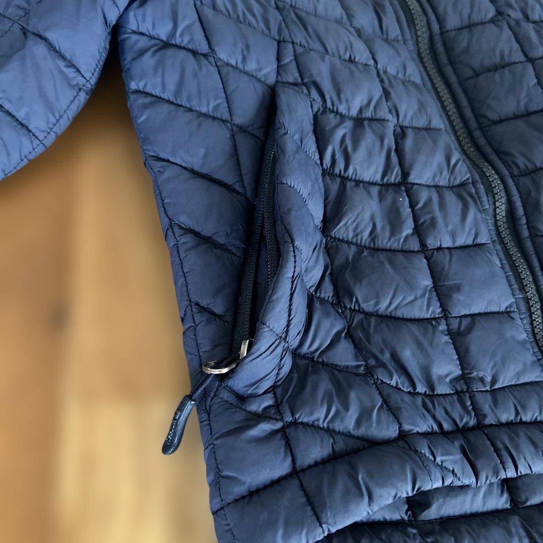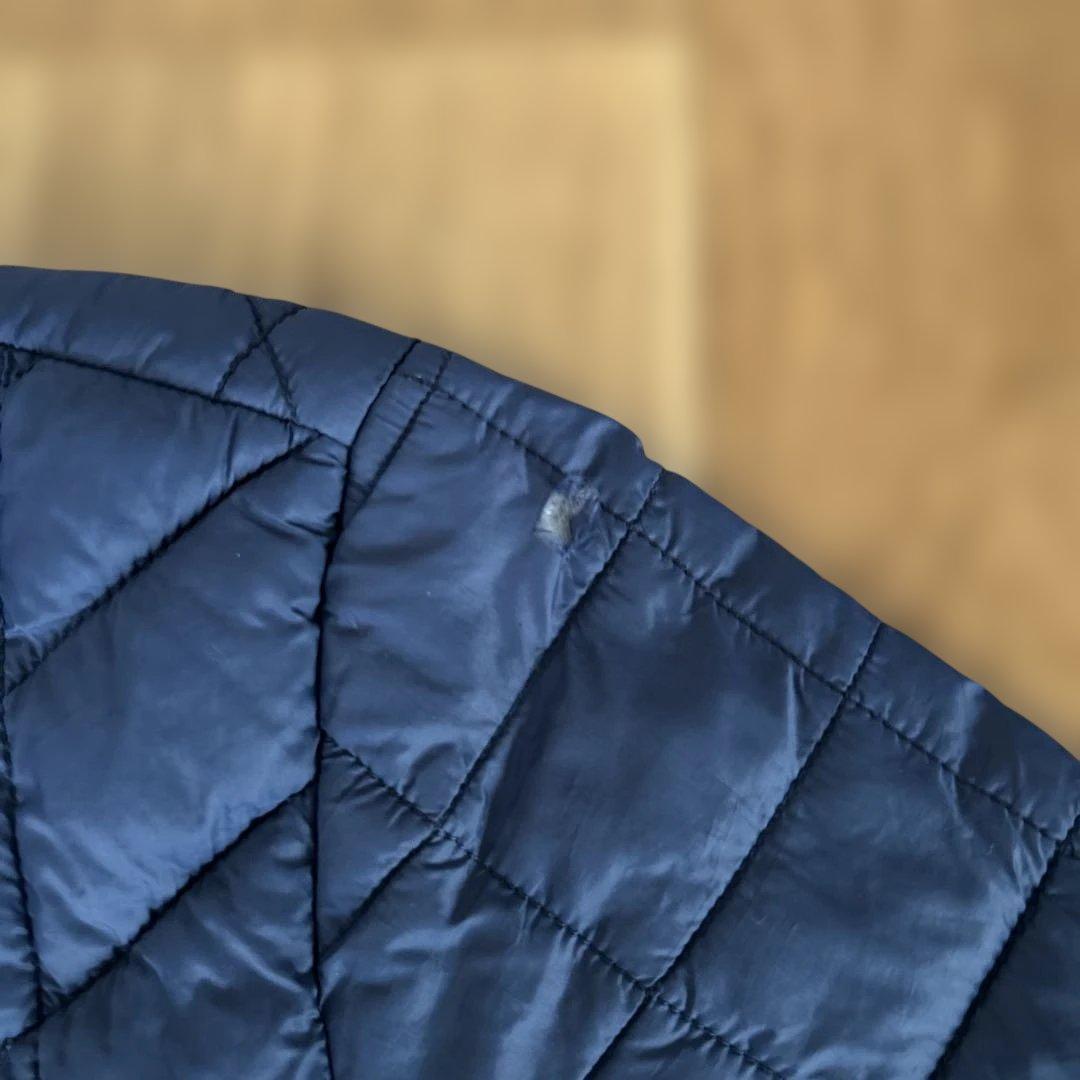 ネイビーのキルティングジップアップジャケット、少しのダメージあり。