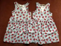 裁縫好きのおばあちゃんが縫ってくれたキャミワンピースです。少し身長差のある双子用に作っていただきましたので、少しだけ長さが違います。