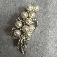 シルバー パール3連 ブローチ エレガント コサージュ 冠婚葬祭 式典