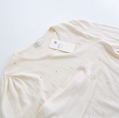 首元と袖口のメロウ加工は、シンプルながらもフェミニンな雰囲気を漂わせます。