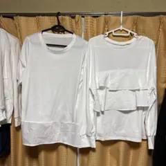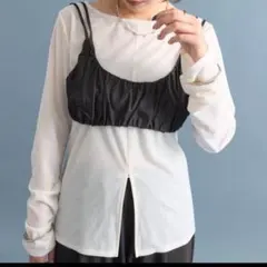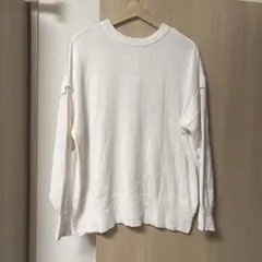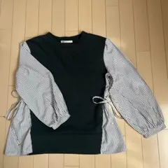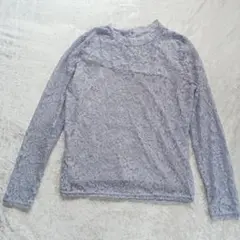 未使用品です。 上品なトップスです。お色はグレー系です。サイズはフリーです。平置き着丈76cm、肩幅37.5cm、脇下身幅50cm、袖丈46cm位です。素材はレーヨン19%ポリエステル78%ポリウレタン3%です。